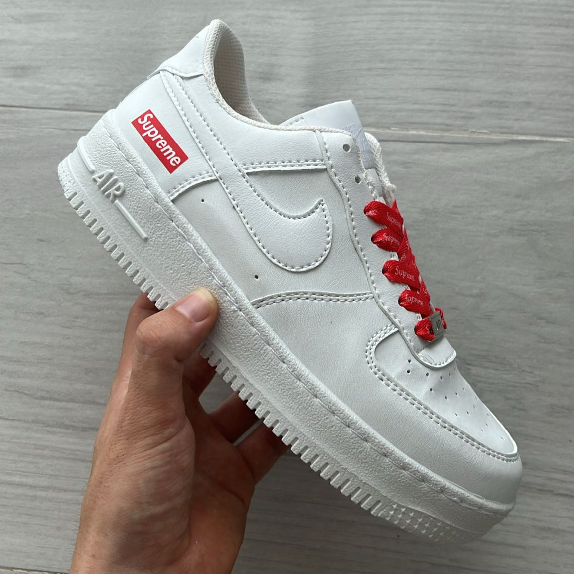 Zapatillas Air F1 Supreme en color blanco, con diseño urbano, cómodo y moderno. Perfectas para el día a día o para destacar con estilo.
